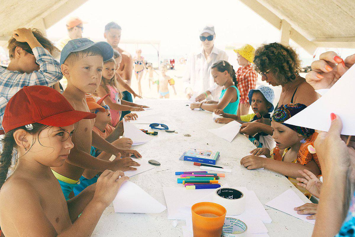 Компания у нас разновозрастная, дети будут заниматься творчеством, а также приобщаться к подготовке вечерних дел, мастерским, активным играм на пляже