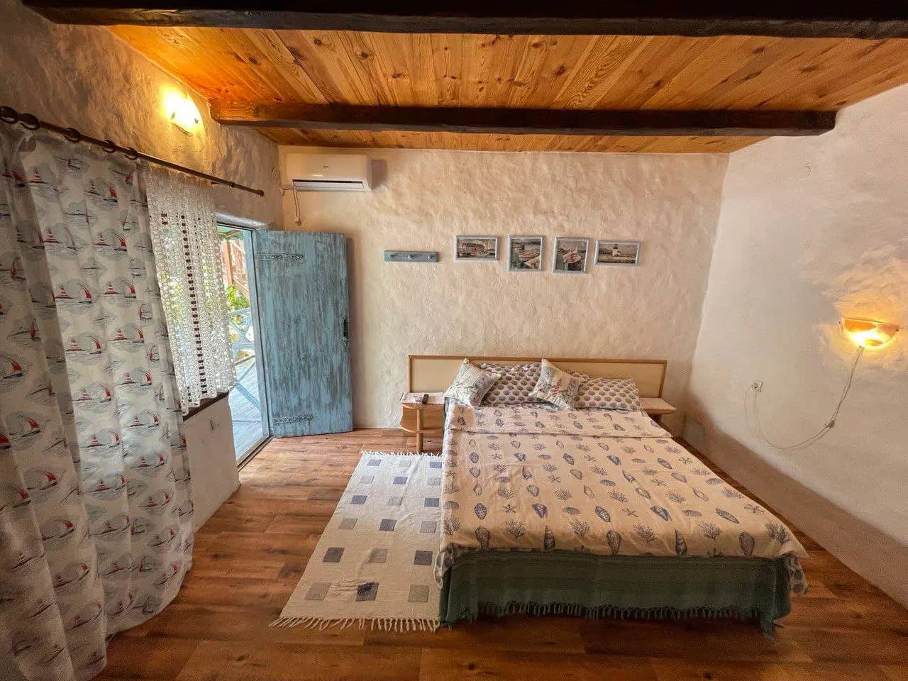 Номера – 2х или 3х-местные площадью от 16 кв.м. с ванной комнатой - туалет, умывальник, душ (горячая и холодная вода постоянно). Жилье построено и отделано по старинной греческой технологии таким образом, что бы летом в номере было прохладно и уютно без кондиционера, температура воздуха в номере от до +26 С.